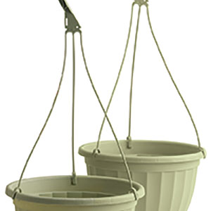 Saucerless Hanging Baskets: Each basket comes with an inner disc which creates a bottom water reservoir. The design features straight smooth sidewalls with extra depth increasing the soil capacity by over 20%. Large soil volume results in larger plants. A wider base provides more stability for packing and shipping. When ordering hanging baskets, hanger preference must be specified.