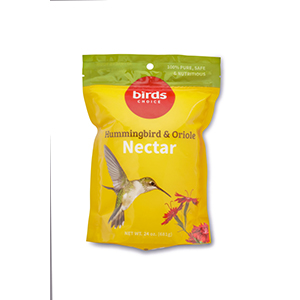 This 24 oz. resealable pouch of hummingbird and oriole nectar is 100% sucrose. Makes 3.75 quarts of hummingbird nectar or 5.25 quarts of oriole nectar. This pure and nutritious nectar simulates the natural nectar found in flowers and will keep your favorite birds in your yard. Never add food coloring to nectar.