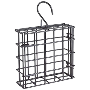 Add a touch of rustic floral charm to your birding experience with this decorative single suet cage bird feeder! Stop unwanted critters from eating your suet cakes with the roof-locking hanger. Built with durable solid steel, the powder-coated black finish makes for a weather resistant bird feeder. The cage grid design gives birds like nuthatches, wrens, chickadees, woodpeckers, and more lots of space for clinging to feed, while the extended perching area provides more space for larger birds. Fill the cage with one suet cake, small seed cake, nesting materials, or oranges to attract a wide variety of birds to your backyard!