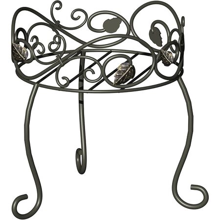 Add style to your indoor or outdoor space with the Scroll & Ivy Plant Stand, featuring a black finish with attractive bronze leaf details. This elegant decorative stand holds your favorite plants while adding classic garden design to any space as a stylish plant shelf or rack.
