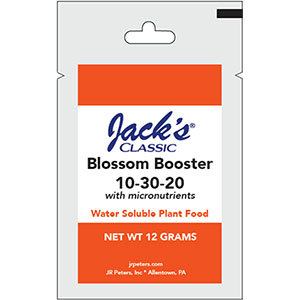 Need a Boost of Flower Power? Our 1:3:2 major nutrient ratio has been trusted by Jack's Professional growers for over 70 years. This soluble and available nutrient combination stimulates blooming, resulting in heavy bud and fruit set.