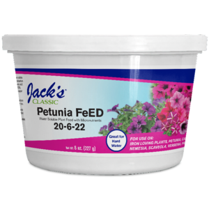 Petunia FeED 20-6-22 is water soluble and specially formulated for iron hungry crops such as petunia, calibrachoa, bacopa, nemesia, diascia, scaevola and others! Feeds through both the roots and the leaves.