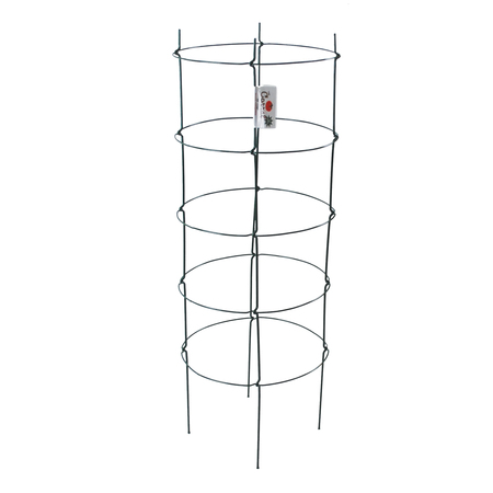 Galvanized wire construction. Cages are PVC coated. Great for supporting peppers, eggplants and other tall garden and flowering plants too!