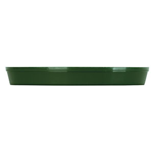 Circular shape, footed saucer - feet allow air flow under plant, guarding against moisture stains. Produced with extra strong, heavy gauge plastic. Protects surfaces, carpets, wood floors and decks.
