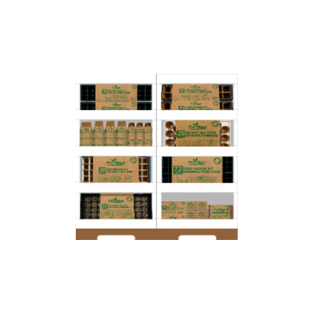 36-Cell Greenhouse Kit includes tray and humidity dome. Designed to help start seeds indoors. Kit includes growing cell packs, tray, and humidity dome. Made from recycled materials.