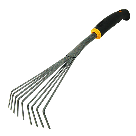 rolled, spring steel tines are so stiff it will pick wet leaves off your driveway but so flexible it can rake directly over bedding plants