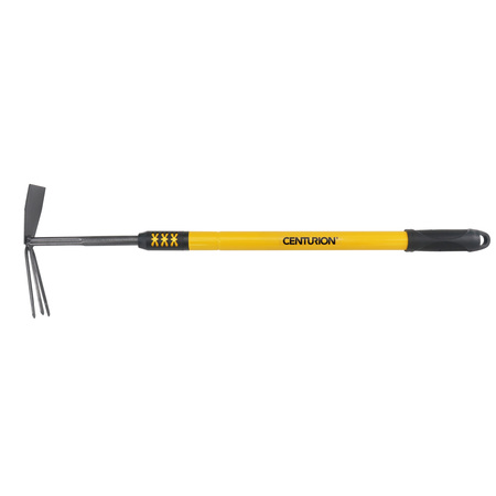 Fiberglass long handle 3 prong culti-hoe is made of durable steel construction. Dual head for weeding and cultivating. Pinned connection between head and handle increases longevity and durability.