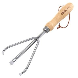 Tempered head for greater durability and long service life. Curved tines efficiently gather and move soil. Bow serves as spring for better control of tine depth. 60" Extra-long ash wood handle allows working in upright position, reduces back strain.