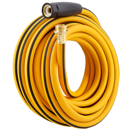5/8" x 50'. Hot water resistant up to 160F. Resists kinking. Coils easily even in cold weather. Crush proof, nickel plated coupling.