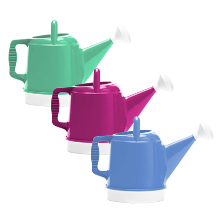 with its long-stem spout and small opening. The user-friendly handles allow for precise watering and easy carrying. Mix case 4 of each color: Peri-Blue, Mint Green, and Fuchsia.
