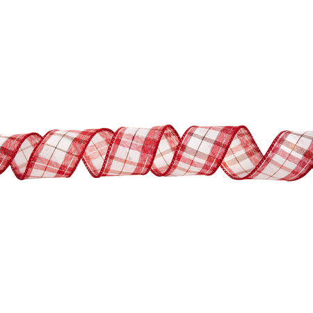 Syndicate Joyful Plaid Ribbon White/Red Wired #40