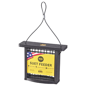 This single cake suet feeder made from yellow recycled poly lumber is a maintenance-free, durable bird feeder. Simply lift the top panel and place a suet cake in the vinyl coated screens and start to attract birds to your backyard. Made in USA