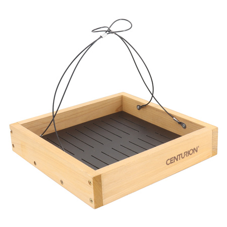 Simple and effective bird feeder holds any seed mix and provides generous perch space to feed multiple birds. Removable feed tray is perforated to keep feed fresh. Made with rot resistant wood and rust-resistant steel cables built for outdoor environments.