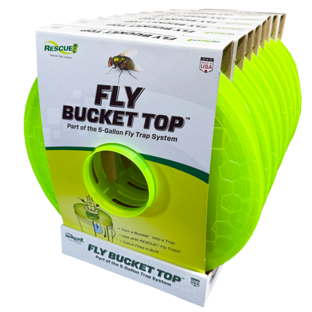 Catch Flies in Bulk! Turn a 5-Gallon bucket* into a JUMBO fly trap with our Fly Bucket Top and a compatible RESCUE! Fly Trap. Our powerful attractant lures flies in through a specially designed entrance, funneling them into the bucket, where they remain trapped until they naturally dehydrate. The trap still catches some flies, but the bucket handles the bulk \u2013 reducing mess and increasing capacity. That's Smarter Pest Control.