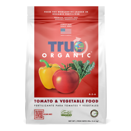 Tomato & Vegetable Food 4-5-6 contains 6% calcium and is blended from natural & organic farm-grade ingredients that are used to make fertilizers for Americas organic produce growers. The tomato and vegetable formula is proven to be extremely beneficial for both plants and soil. For in-ground and container plants. Apply once per month around your garden during the growing season to support vigorous growth and abundant harvests. OMRI listed