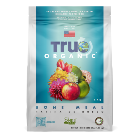 Bone Meal is used to help grow larger organic fruits and vegetables for your family table. True Organic Bone Meal is a sustained supply of nitrogen and phosphorus, making it beneficial for overall growth, flowering and fruiting. OMRI listed.