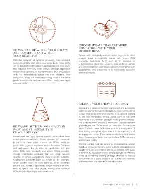 BE AWARE OF THE MODE OF ACTION grown higher than BCAs alone can deal with. Growers can
