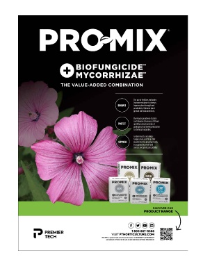 PRO-MIX® is a registered trademark of Premier Horticulture Ltd. BIOFUNGICIDE™ and MYCORRHIZAE™