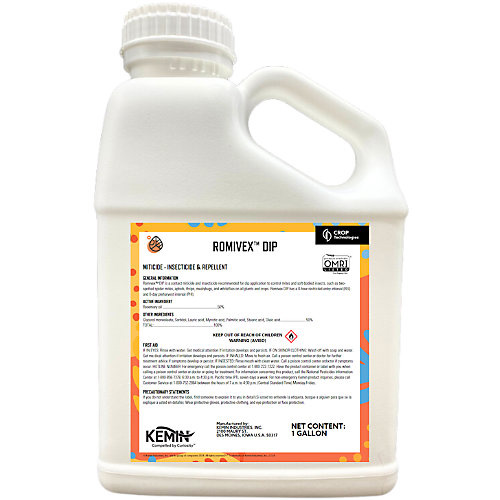 Romivex DIP from Kemin marks the return of the original formulation of popularly known TetraCURB for use as a dip and foliar spray for those propagators that relied on it as an important tool to ensure that new cuttings were clean before introducing them into their facilities. Romivex DIP is an insecticide and miticide specifically designed for dipping unrooted cuttings for all greenhouse and nursery plants to effectively control mites and small, soft-bodied insect infestations. The formulation includes an adjuvant, emulsifiers, and the powerful active ingredient. Rosemary oil features a unique compound profile that provides multiple modes of action: suffocation by blocking airways, desiccation of the exoskeleton, and paralysis. The active compounds derived from rosemary oil target the insect-specific octopamine receptor, leading to paralysis and eventual death of the insect. As a FIFRA 25(b) Exempt product, it is labeled for use on a broad range of edible and non-edible crops. OMRI certified, 0-hr REI, 0-day PHI.