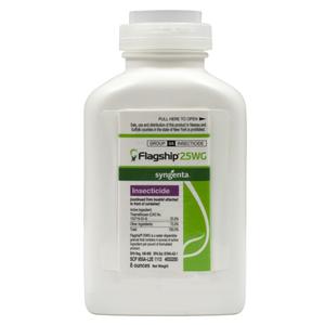 Flagship offers contact, translaminar systemic and systemic control of many greenhouse and nursery pests, including aphids, leafhoppers, mealybugs, whiteflies and others. Applied as a foliar spray, it is rapidly absorbed into the leaf tissue yielding 2 to 4 weeks residual control from one foliar application. When applied as a drench, Flagship is absorbed by the roots and is translocated to new tissue. Drench applications can provide systemic control for 6-8 weeks. Certain vegetable transplants are on the label. Consult label for spray rates that vary by pest and crop.
