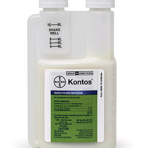 Kontos is a broad spectrum miticide/insecticide that has true systemic activity. It can be applied as a spray or a drench and includes many vegetable transplants on the label. From a foliar spray it controls: aphids, mealybugs, scale, whiteflies and others.