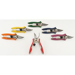 Perfect for trimming woods stems and perennials. 1/4" cutting capacity. Stainless steel blades. Ergonomically designed. Available in an array of colors: Red, Orange, Yellow, Green, Blue and Berry.