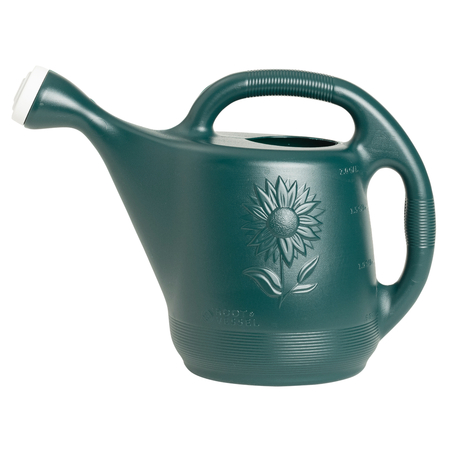 2-Gallon Plastic Watering Can Features: Large 2-gallon capacity to spend less time refilling and more time enjoying your garden. Features a timeless design with a sunflower embossed on each side. Built with thick-walled, UV-resistant, quality plastic to ensure long-lasting use. Easy-pour, detachable nozzle for fast replacement and cleaning. Wide spout to accurately target your plants' roots, reducing waste. Ergonomically designed for easy pouring without straining your wrist or arm. Measurement markings for precise control and prevent overwatering or underwatering. Environmentally conscious materials that are BPA-free and recyclable. Proudly made in the USA
