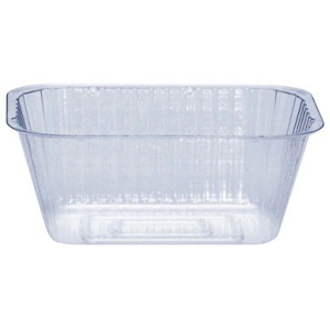 9.25" oval clear liners nest in half the space of competitors and de-nest easily. Ribbed sidewall strengthens the sidewall, making it more rigid. Product dims 9.25" x 6.875" x 3.5"