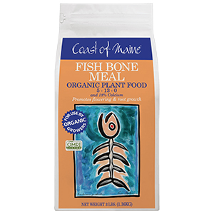 Fish bone meal is a natural byproduct of the fishing industry, we make use of this "waste" material, as plant food, that would otherwise be discarded. It is made by dehydrating and grinding the bones into meal and helps improve soil structure and fertility by adding organic matter, which enhances water retention, aeration, and microbial activity in the soil. Coast of Maine Fish Bone Meal is preservative-free and is used instead of traditional steamed bone meal in all of our fertilizer blends.